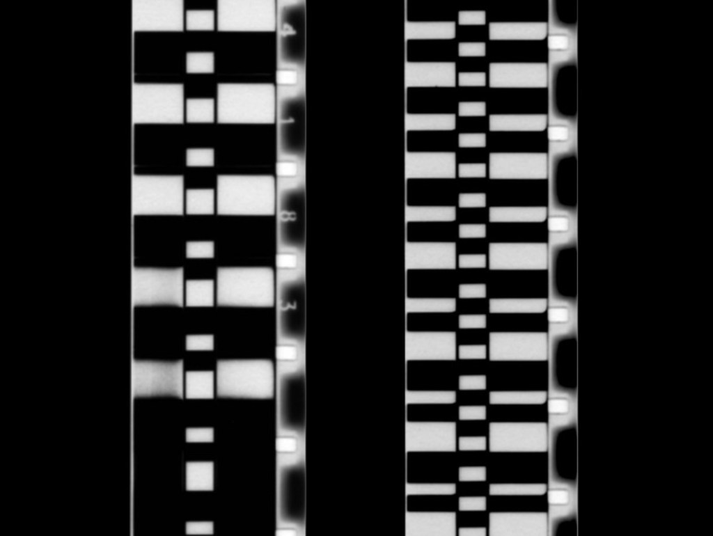 This film began as a composition in drawings. In the filming of these drawings — it developed into an orchestration of noise — whereby the intervals between the lines register as differentiated “notes”. The drawings were then filmed. The movement of the camera lens — towards or away from the drawings — is heard; as the intervals between lines narrow or widen, so the pitch of sound rises or falls. The image produces sound — that is, the playing of lines is literally “light” music.
